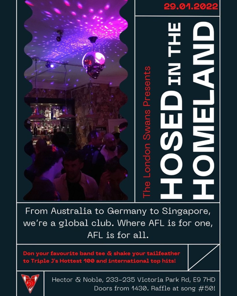 The London Swans are excited to present our Hottest 100 Party on Saturday, 28 January at The Bucks Head, Camden – kicking off at 3pm.